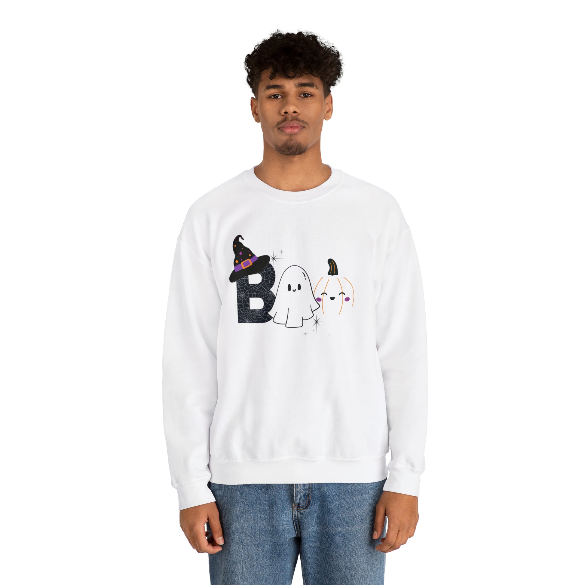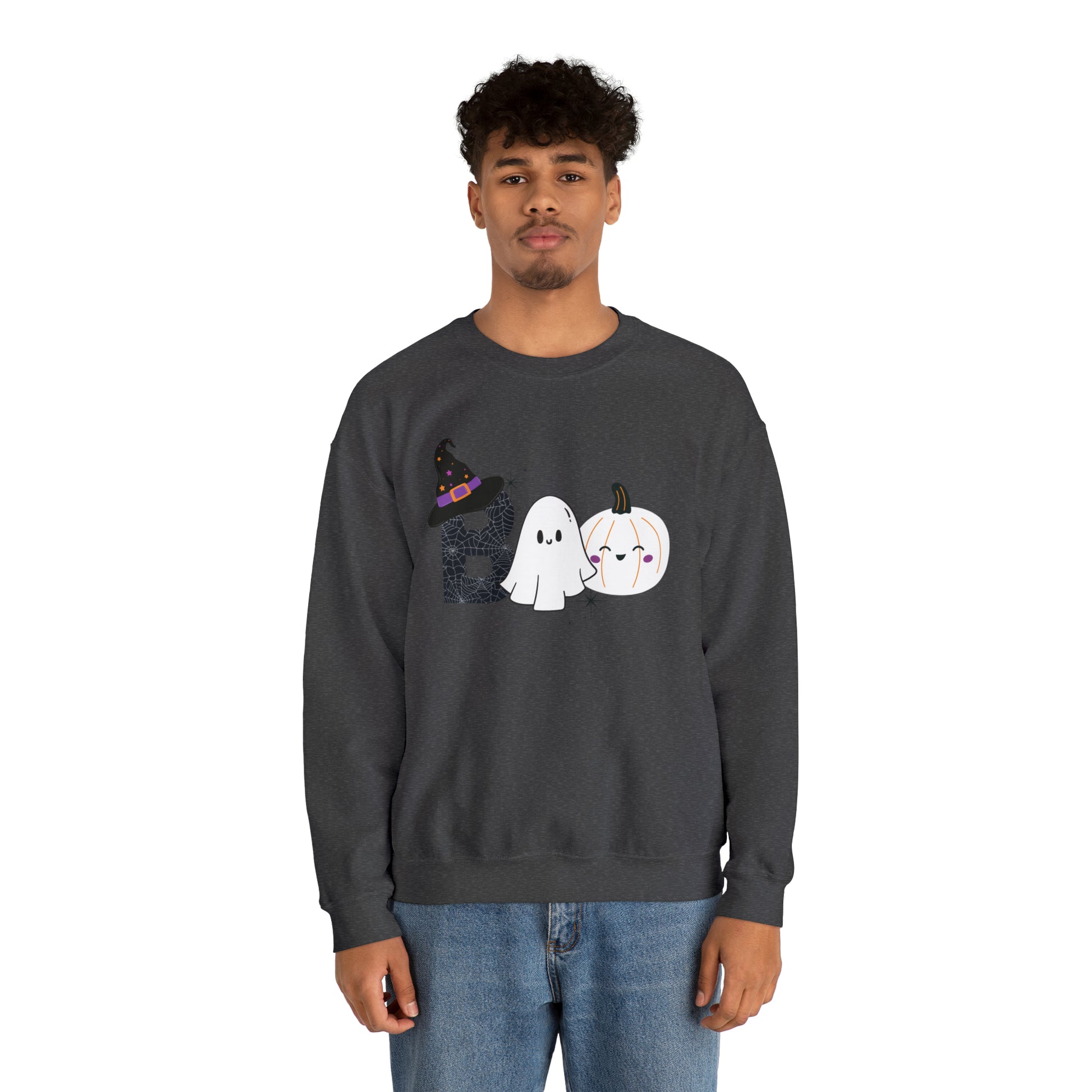 Boo Ghost And Pumpkins Unisex Heavy Blend Crewneck Sweatshirt