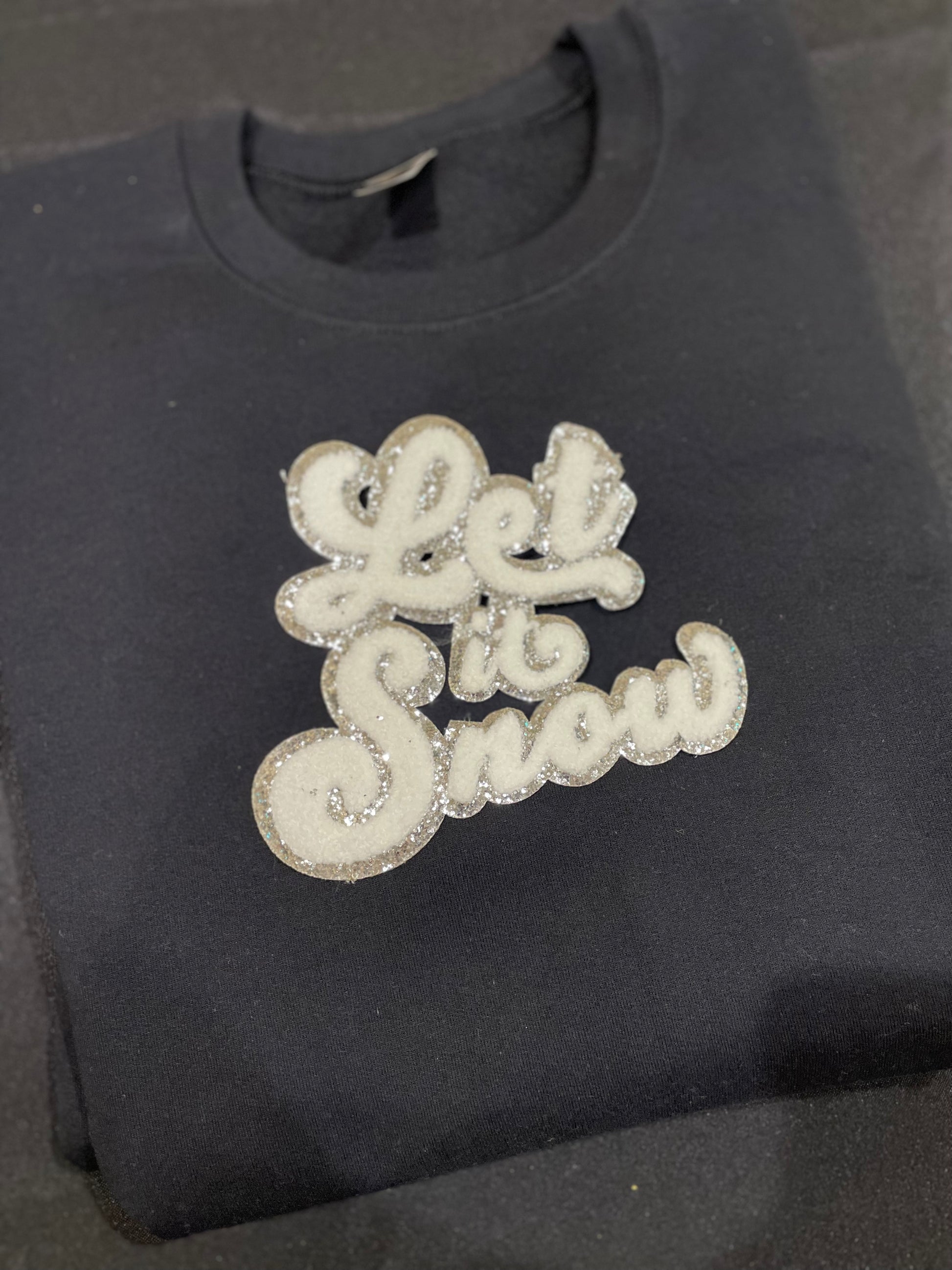 This Let It Snow Patch Crewneck Sweatshirt is the perfect addition to your winter wardrobe. Stay cozy and stylish all season long!