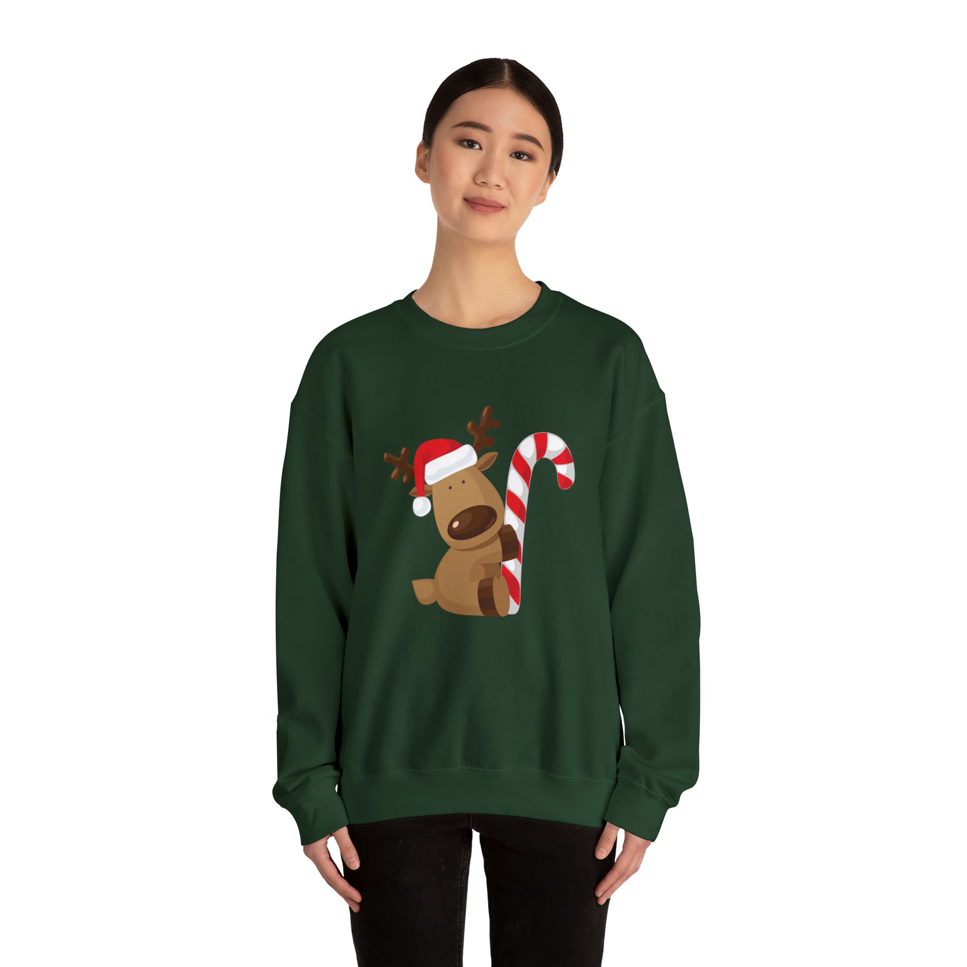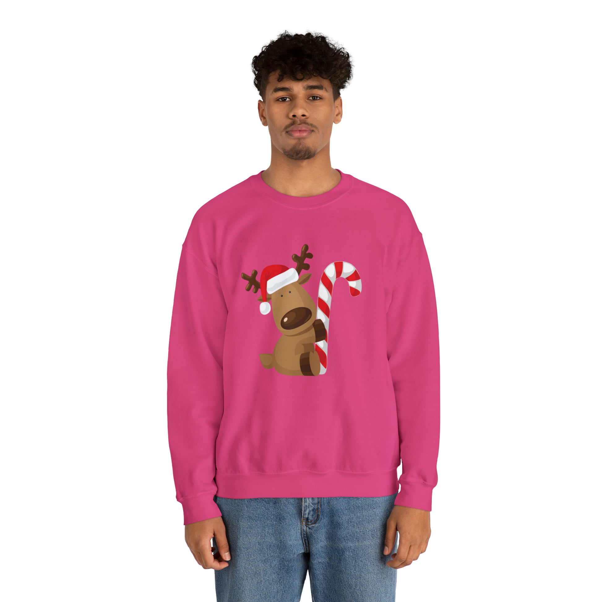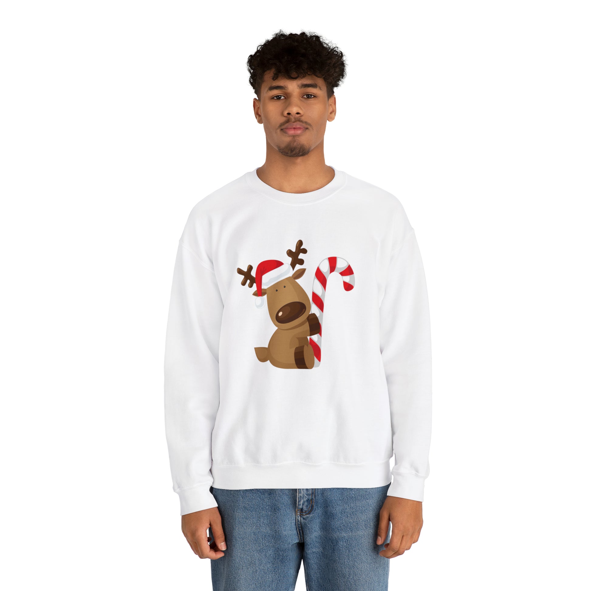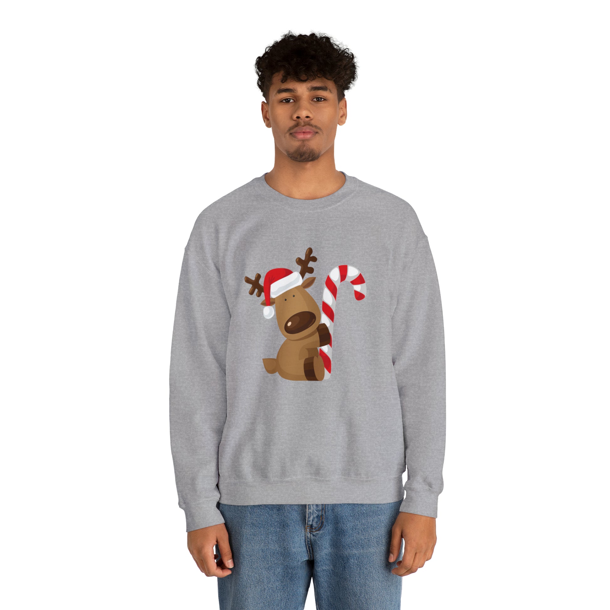 Reindeer Candy Cane Unisex Heavy Blend Crewneck Sweatshirt